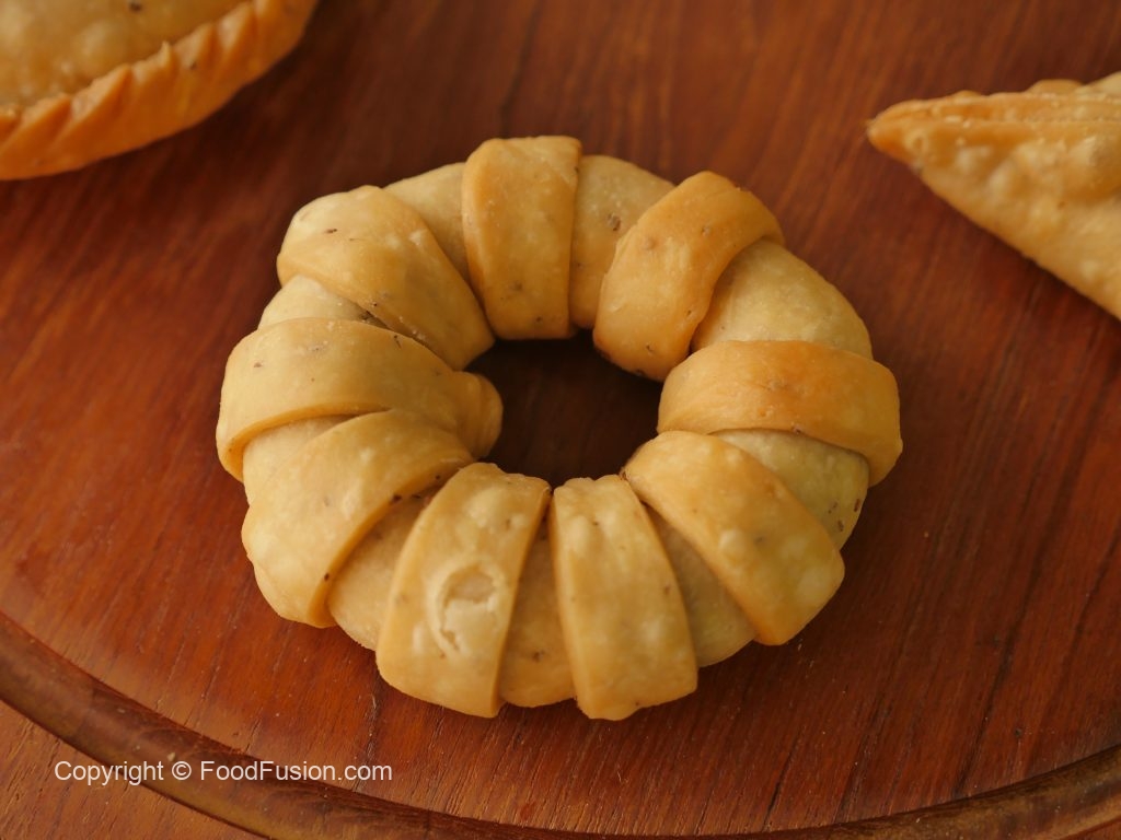 Round turn ker lein aur edges per pani laga ker dono sides ko apas mein seal ker ka ring shape bana lein.