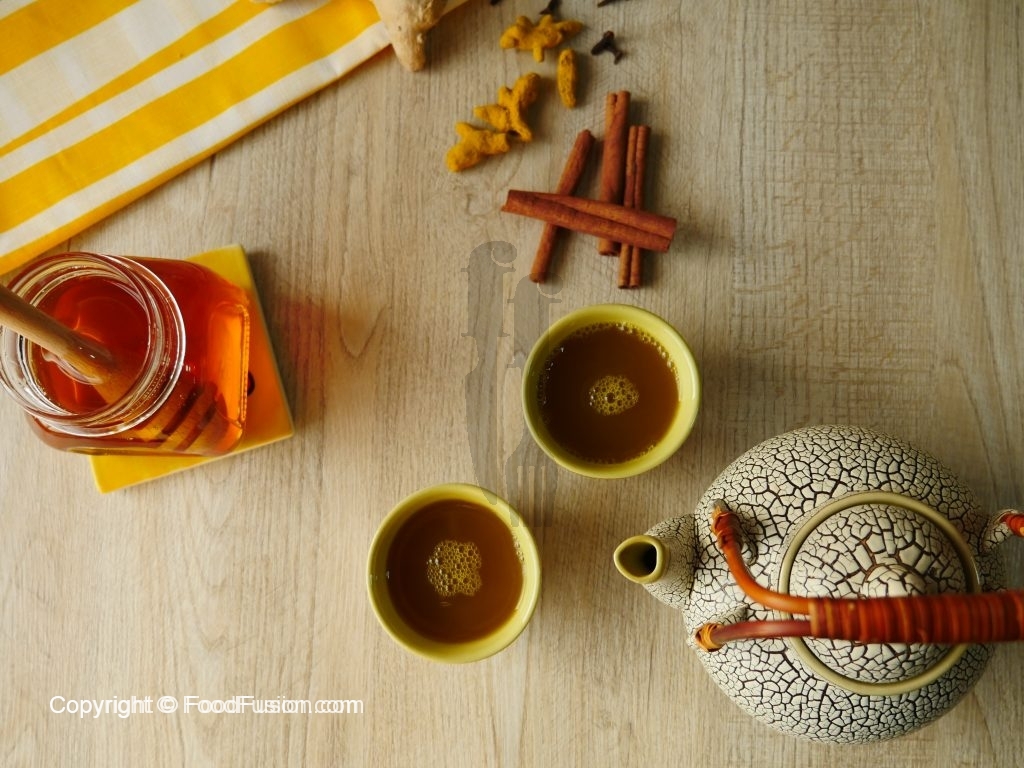 Pour in a serving cup through strainer,add honey,mix well & serve.
