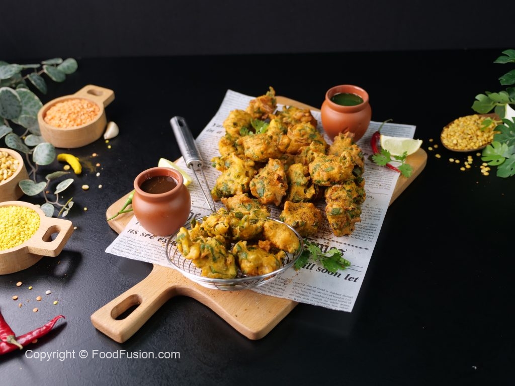 -Bowl mein cooked daal,baisan,lal mirch crushed,chawal ka atta,sabut dhania,namak,zarda ka rang,baking soda aur pani dal dein aur 2-3 minutes kliya ache tarhan whisk ker lein aur dhak ker 10 minutes kliya rest dein.