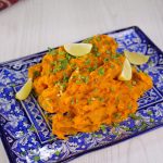 -In a serving platter, add prepared chaat and garnish with chaat masala powder, green chilli, fresh coriander & lemon then serve!