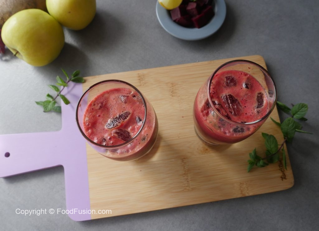 In juicer machine,add apples,beetroots,carrots,ginger and extract juice.