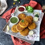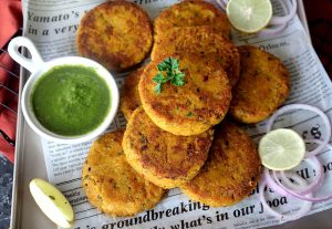 Grease hands with oil,take small quantity (60g) & make kabab of equal sizes (makes 19-20).