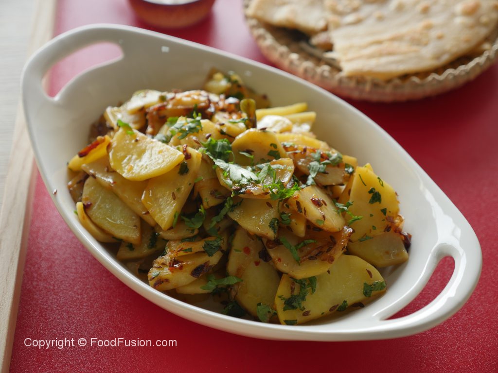 Lal mirch crushed aur namak dal ker ache tarhan mix karein aur halki ancch per aloo gul janay tak paka lein (15-20 minutes) aur beej beej mein chamcha chalatay rahien.
