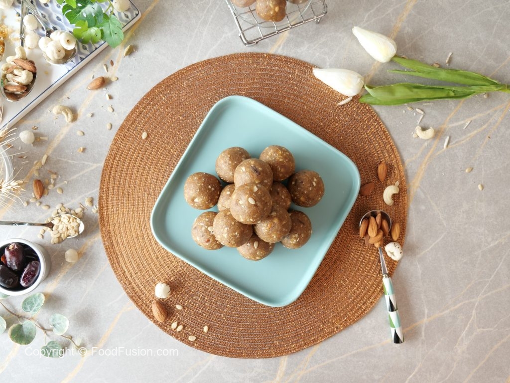 -Roasted atta aur khajure mixture ko warm huna chahiya ta ka easily bind ho jaye.