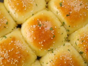 -Stuffed buns par brush karein aur til chirak dein (makes 16).