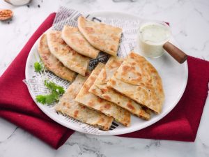 -Cut into pieces & serve with raita!