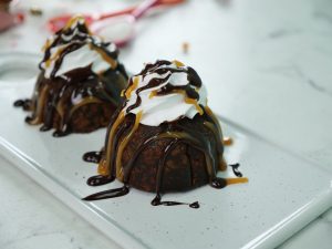 -Decorate with whipped cream,prepared caramel sauce & chocolate sauce & serve!