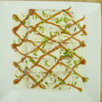 Add caramel sauce and garnish with nuts.