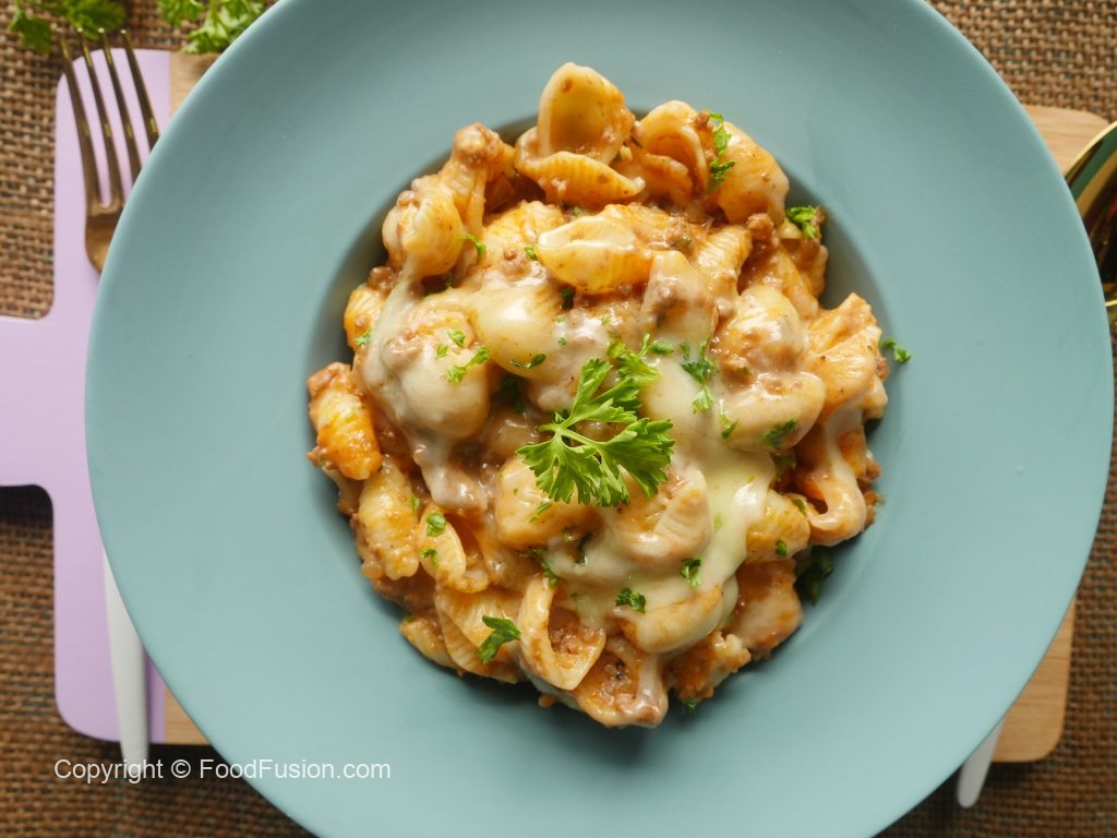 Mozzarella cheese,cheddar cheese aur fresh parsley dal ker dhak dein aur halki ancch per cheese melt hunay tak paka lein (approx. 2-3 minutes).