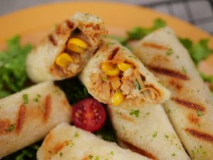 -Add prepared filling on one side of bread & apply flour slurry on the other side of bread slice then roll up.