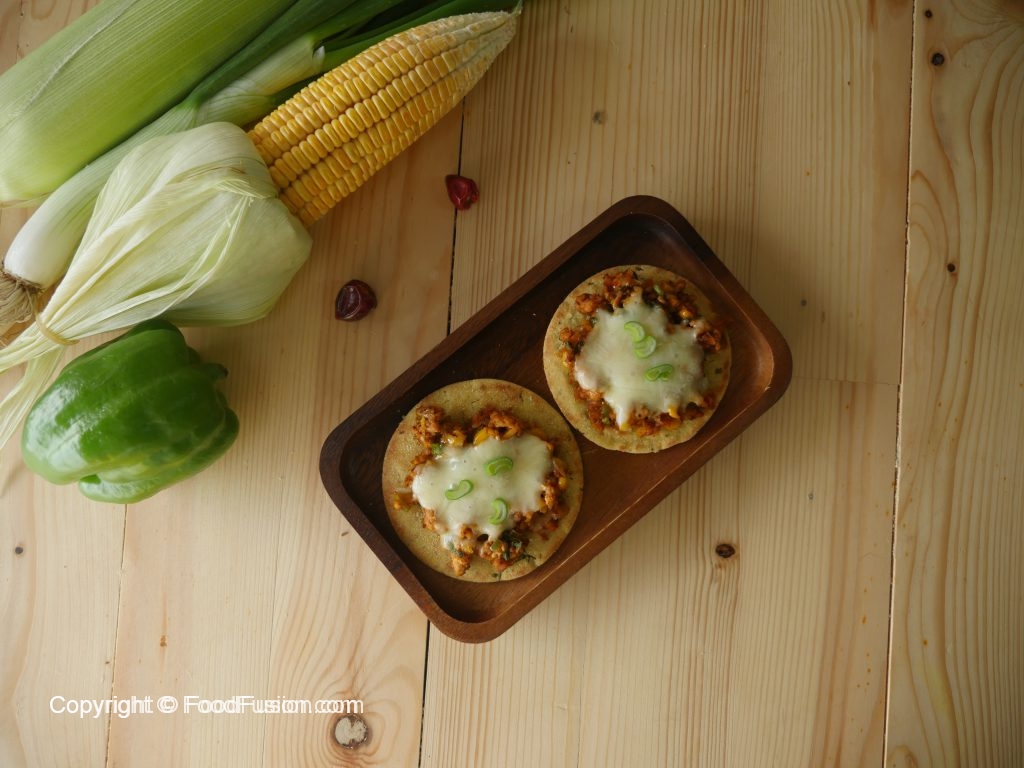 Chopper mein corn kernels dal ker coarsely chop ker lein & side per rakh dein.