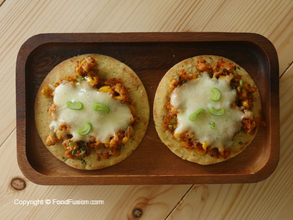 Chulha bund ker dein,tayyar chicken corn filling,mozzarella cheese aur cheddar cheese rakh dein.