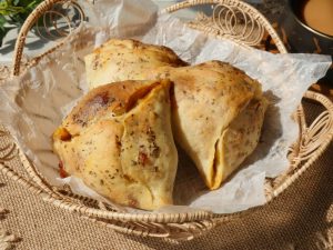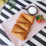 Brush flour slurry on one side of bread and fold bread slice to make a cone,add chicken filling (1 & ½ tbs),mozzarella cheese (1tbs),apply flour slurry on the edges and bring the edges together and seal the edges properly.