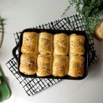 Grease 7.5 x 11” baking pan with prepared herbed butter,place dinner rolls and cover & let it proof for 20-25 minutes.