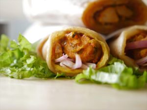 Paratha per tomato ketchup,pyaz soaked in lemon juice aur cooked chicken dal ker wrap ker lein & serve karein.