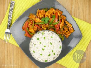 Chicken Jalfrezi tayyar hai, chawal ka saath serve karein.