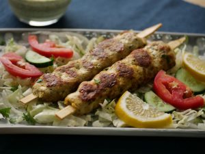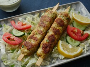 Haathon ko oil sa grease karein,mixture ko lein aur kabab bana ker skewers per laga lein (makes 10-12).