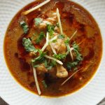 On serving plate,add nihari,tarri (chili oil),ginger,fresh coriander,lemon juice & serve.