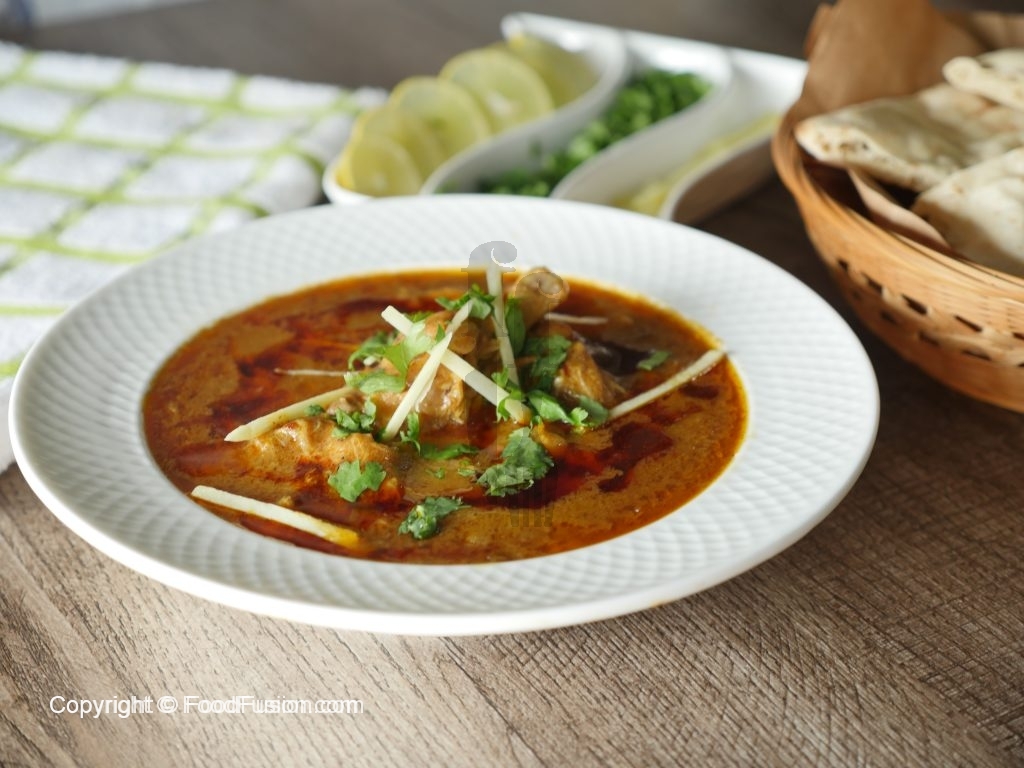 Serving plate mein nihari,tarri (chili oil)adrak,hara dhania aur lemon juice dal ker serve karein.