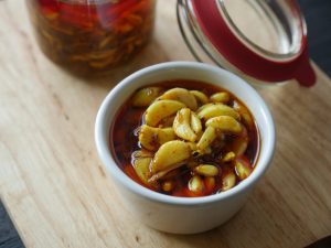 In frying pan,heat oil and shallow fry skewers on medium low flame until done.