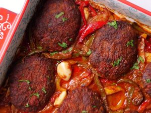 Ab marinated chicken,color bell pepper,tamatar,pyaz aur lemon slices ko skewers per assemble ker lein.