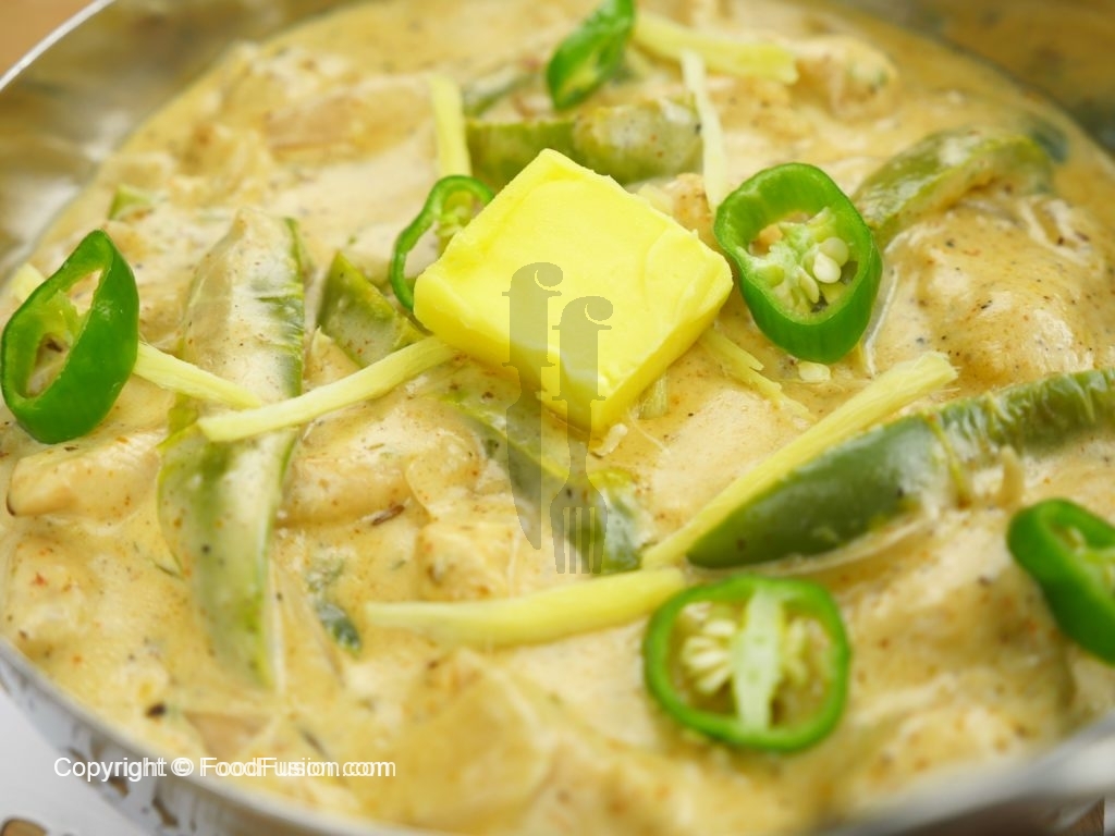 Adrak,hari mirch aur makhan sa garnish karein.
