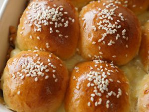 On the top of the buns,apply melted butter and sprinkle sesame seed.