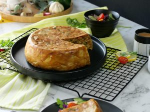 -Poke holes with wooden skewer & pour the remaining egg mixture on the top.