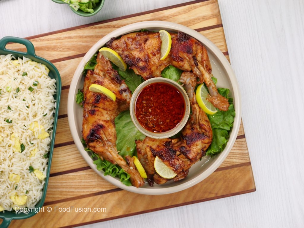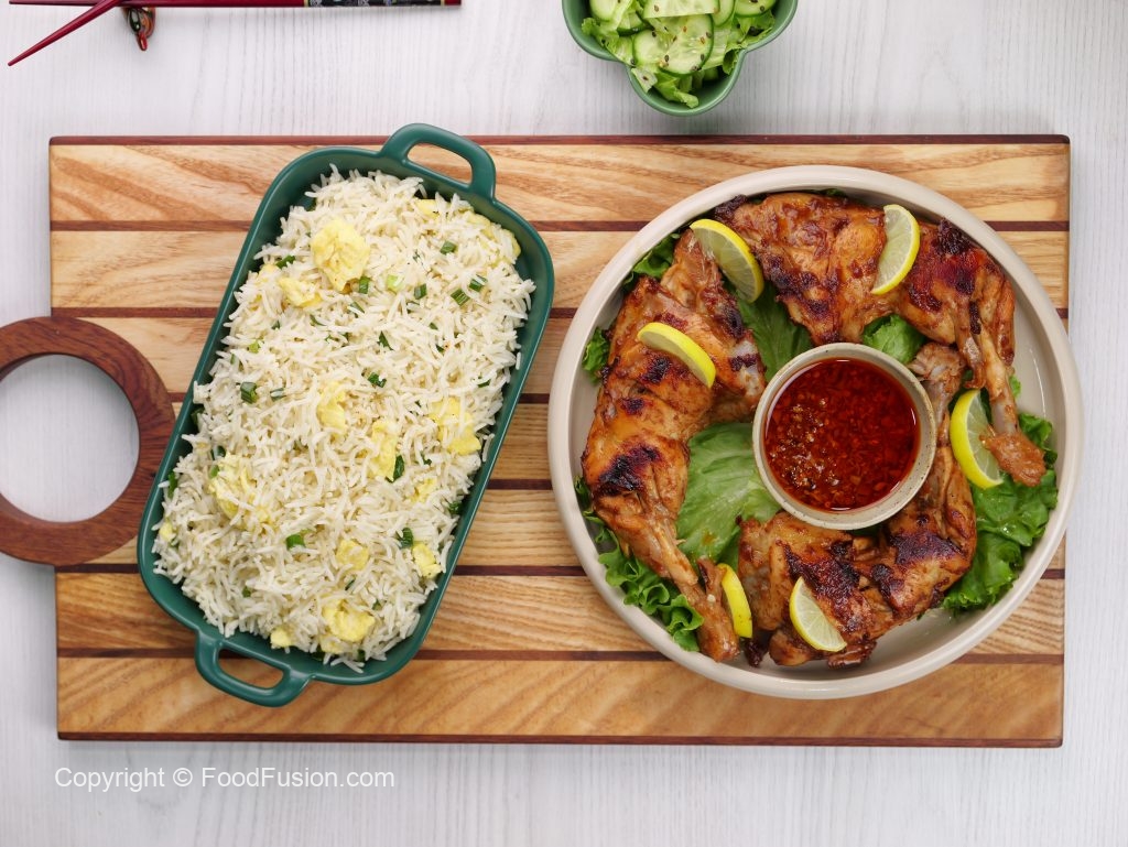 -Chicken tikka ko egg fried rice ka saath serve karein!