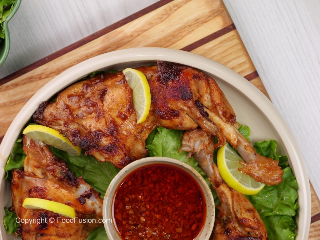 -Chicken pieces dal ker ache tarhan coat karein aur cling film sa cover ker la 4 hours or overnight kliya refrigerator mein marinate ker lein.