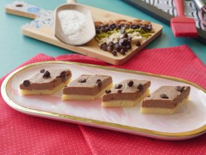 On milk barfi mixture,add & spread chocolate barfi mixture.