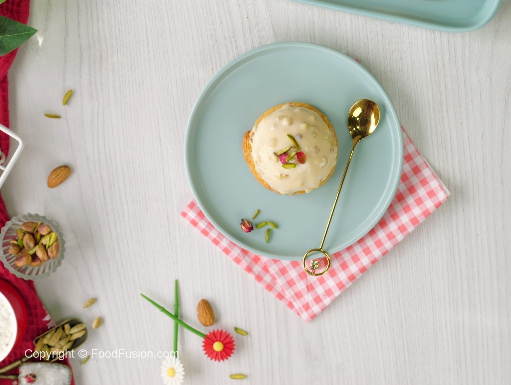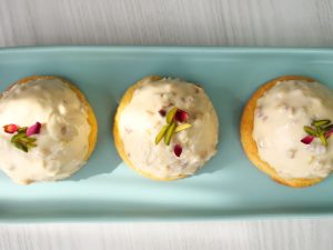 -Garnish with pistachios,rose petals & serve (makes 8).