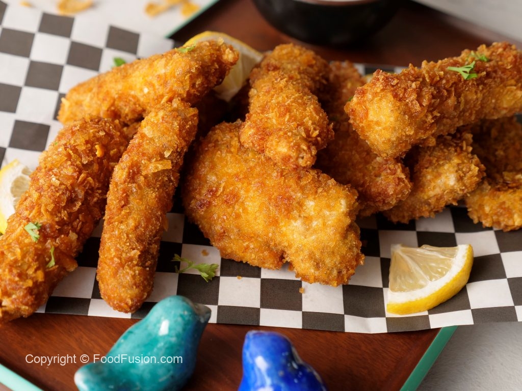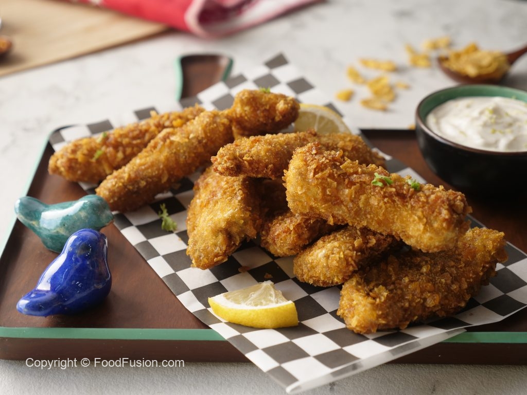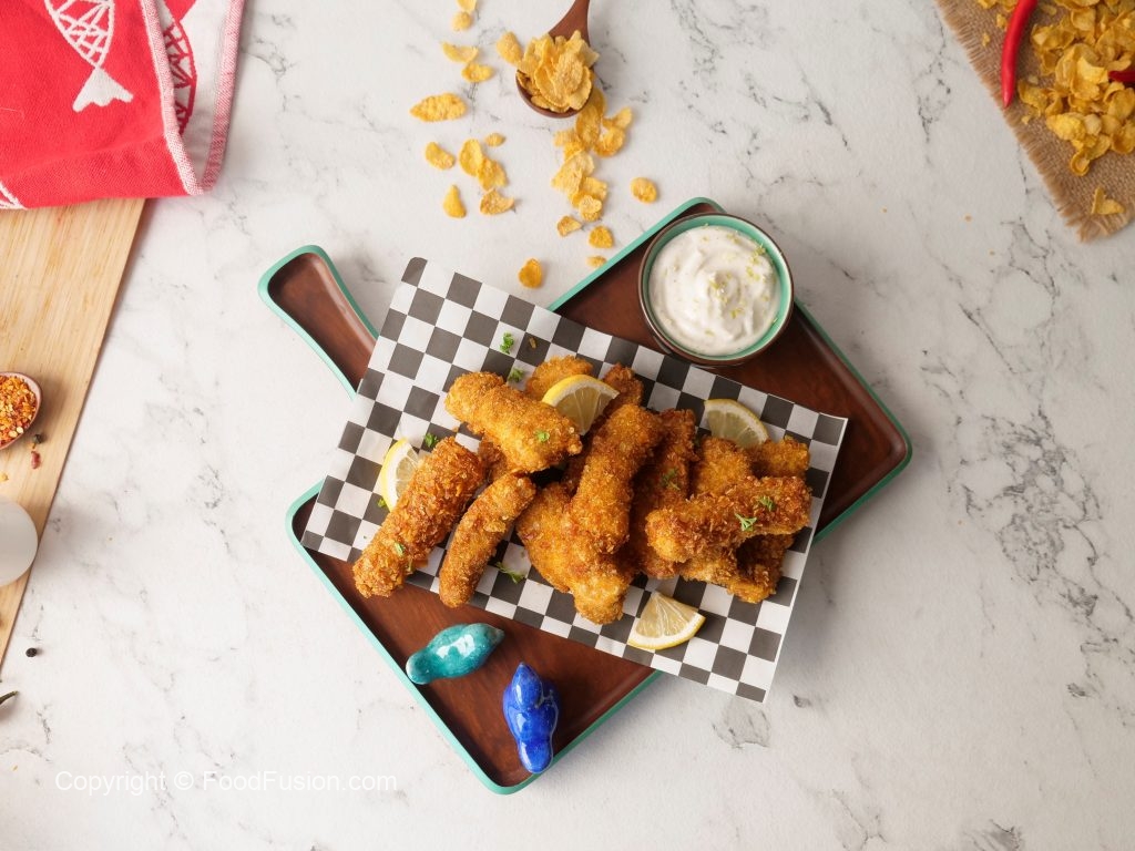 Cornflakes Crusted Finger Fish with Lemon Garlic Mayo