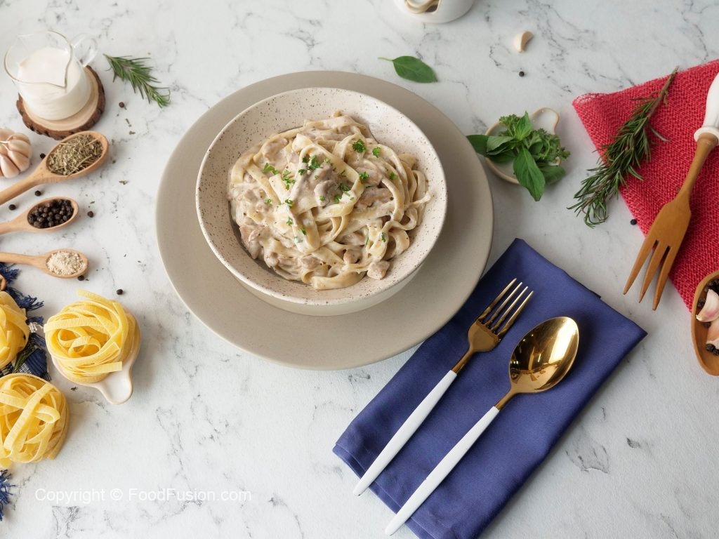 Add black pepper crushed,salt,italian seasoning,nutmeg (grate with the help of grater) & garlic powder, whisk well and cook on low flame for 2-3 minutes.