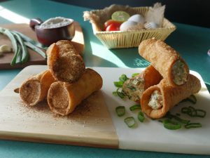 -Grease griddle with cooking oil,place stuffed crepes,sprinkle dried oregano,red chilli crushed,cover & cook on low flame until cheese melts (1-2 minutes).