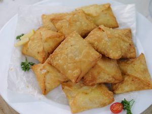 -In a wok,heat cooking oil & fry samosa on low flame until golden & crispy.