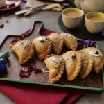 Brush oil on creamy coconut samosa & bake in preheated oven at 200C for 20-25 minutes (flip in between once after 15 minutes).