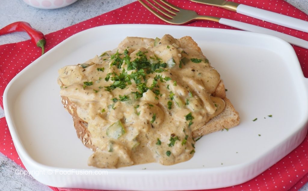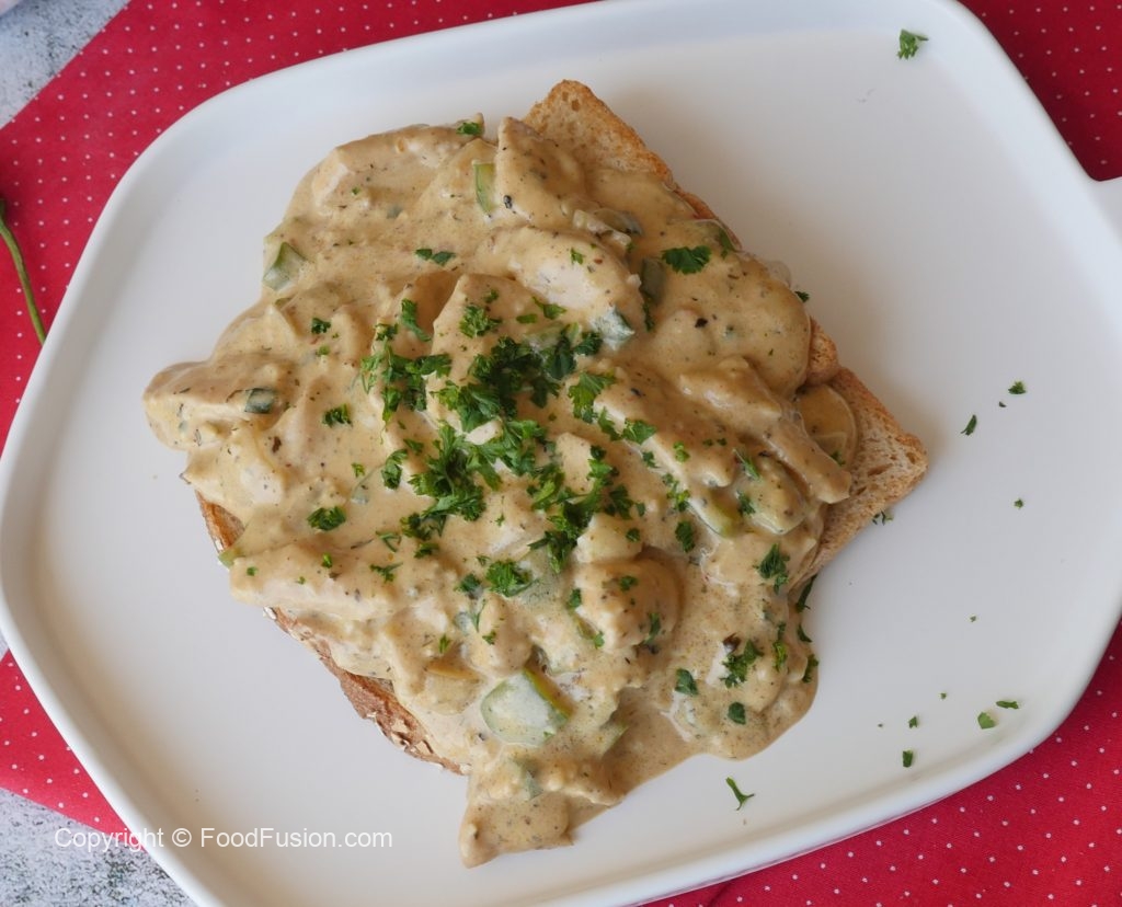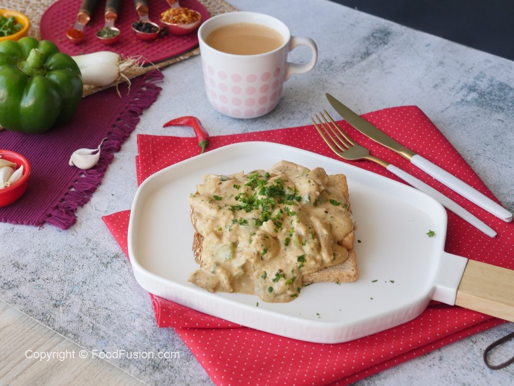 This mouth watering Creamy Garlic Chicken on toast is a must try recipe. Do give it a try. #HappyCookingToyou #OlpersDairyCream #FoodFusion