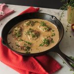 -In a jug add cream,chicken stock,dijon mustard,salt,black pepper crushed,cayenne pepper,dried thyme,whisk well & set aside.