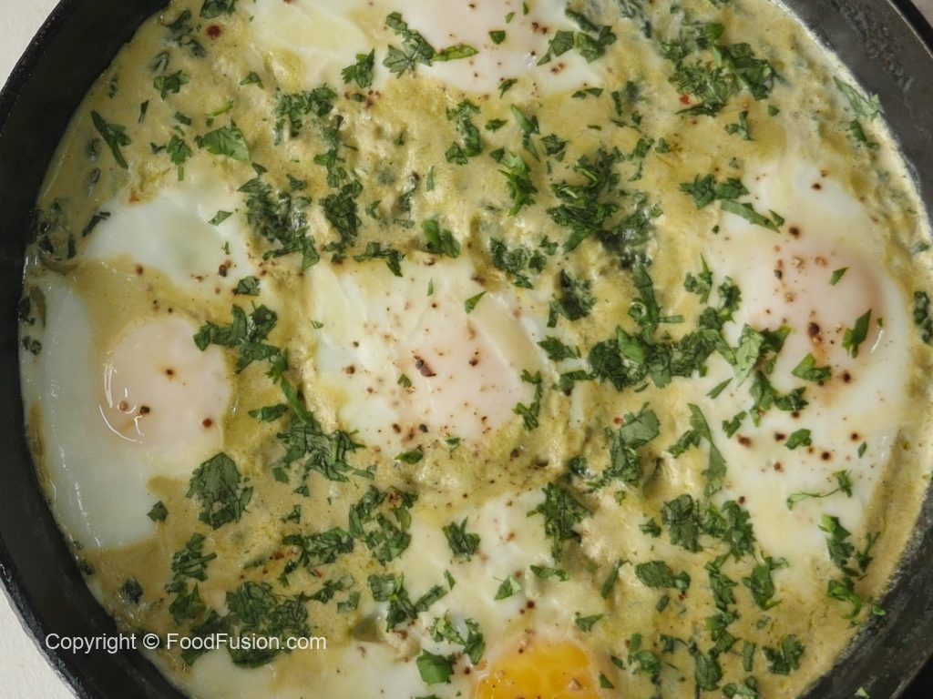 Ek,ek ker ka anday shamil karein,kali mirch crushed,cheddar cheese aur hara dhania dal ker dhak dein aur halki ancch per 2-3 minutes kliya paka lein & serve karein!