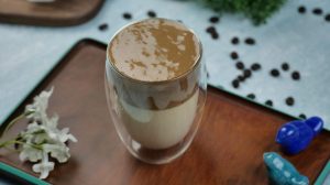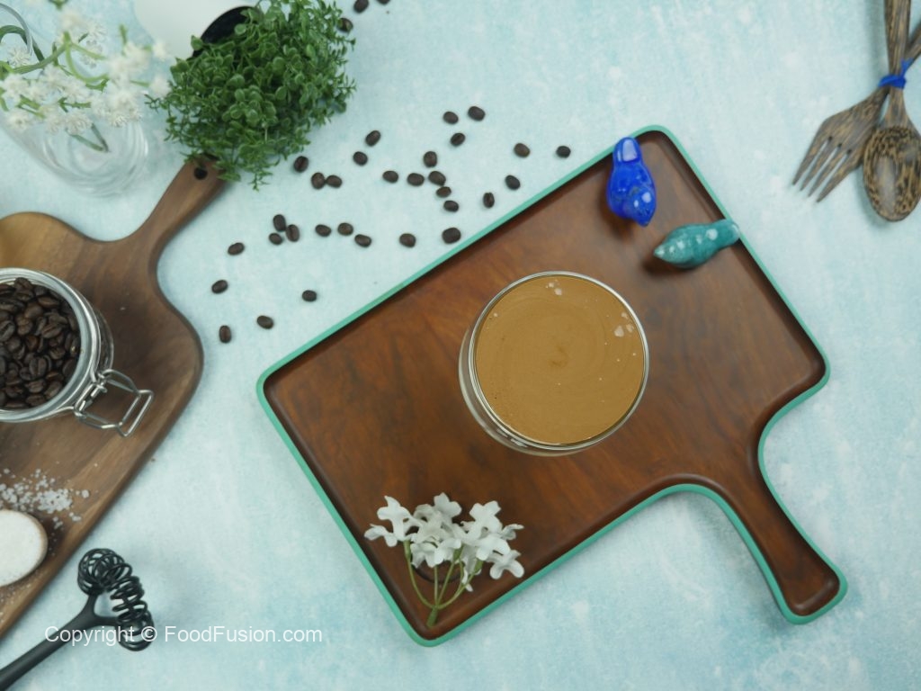 Serving glass mein doodh,2-3 scoops mocha coffee mix top per dal ker serve karein.