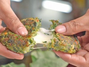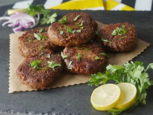 Grease hands with cooking oil & make patties of mixture (makes 14-15).