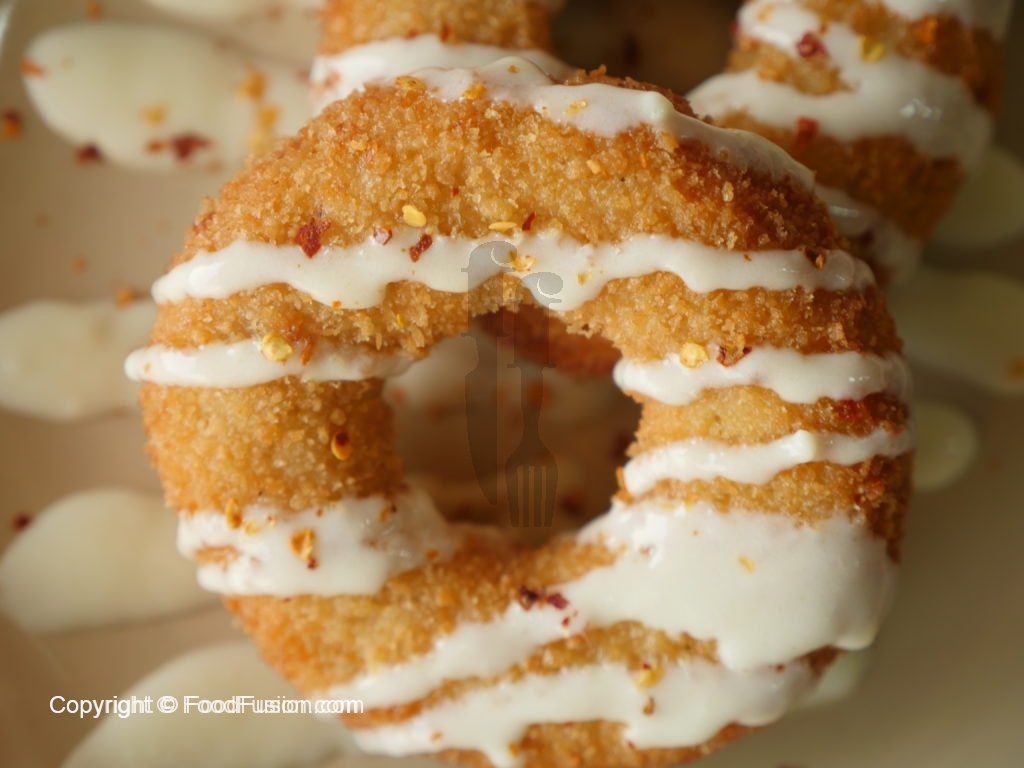 Drizzle cheese sauce and sprinkle red chili flakes & serve.