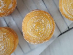 -Apply egg wash & fold in pinwheel shape,place on baking paper,cover with kitchen towel & let it proof for 30 minutes.
