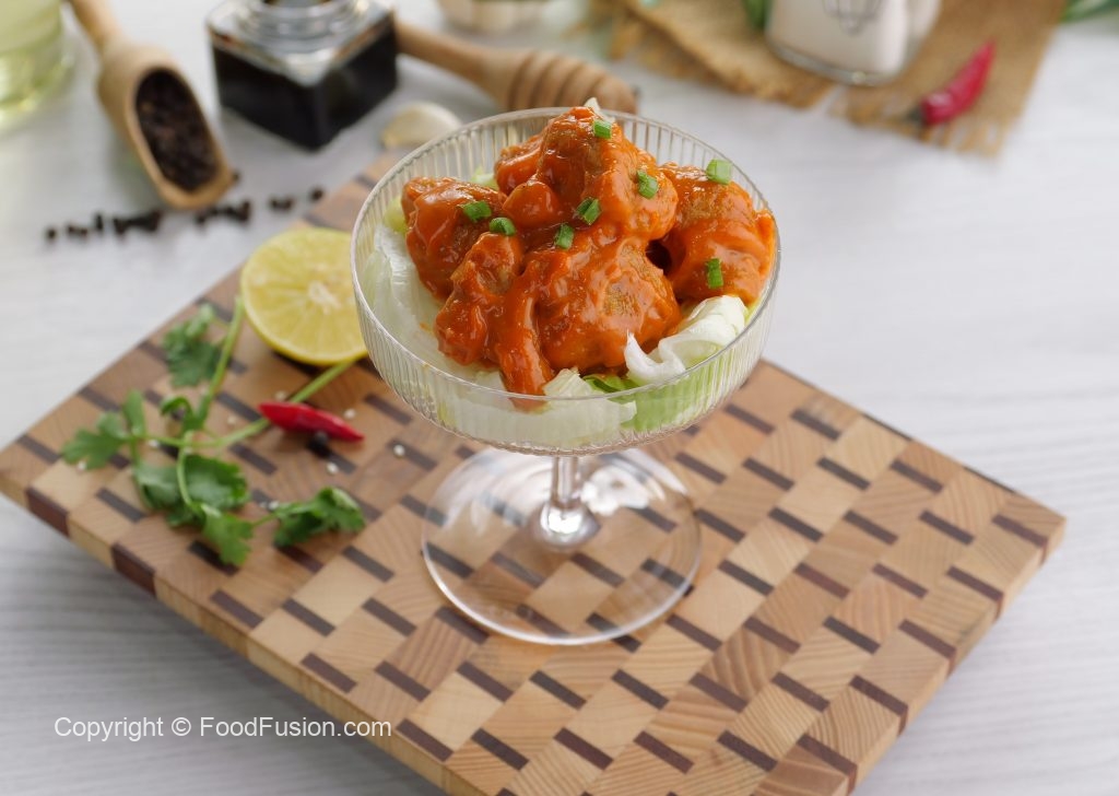 -Bowl mein chicken/prawns/phool gobhi,soy sauce,lemon juice,lehsan paste,lal mirch powder,pink salt aur kali mirch powder dal ker ache tarhan mix ker lein aur dhak ker 15-20 minutes kliya marinate ker lein.