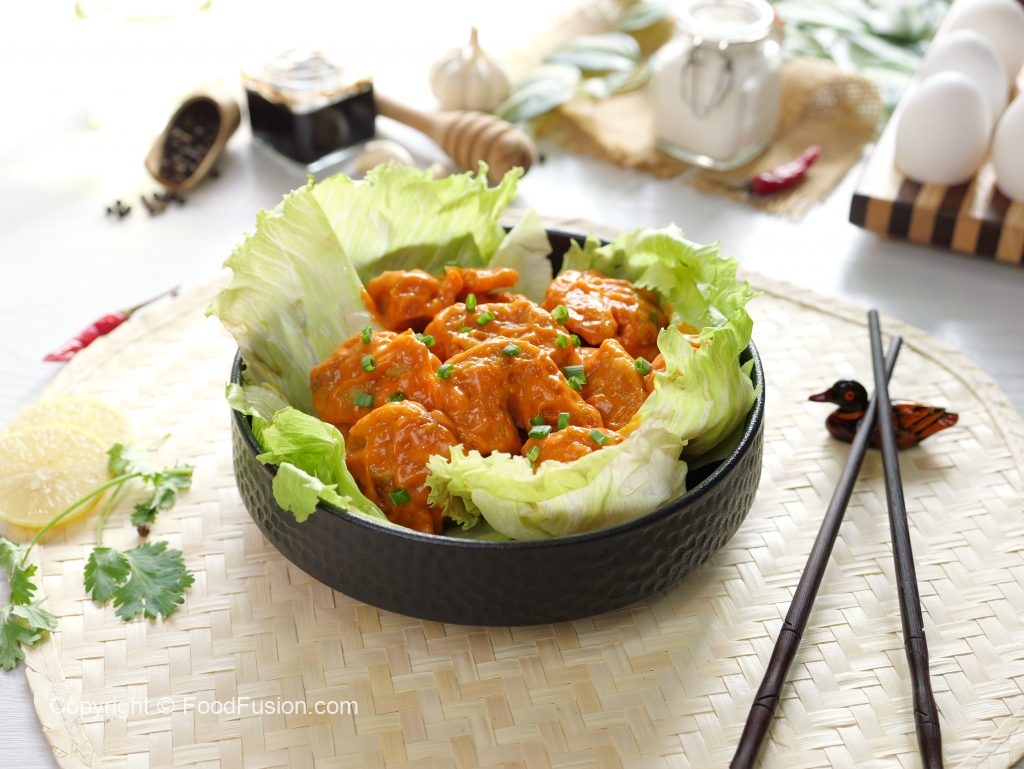 -In a wok,heat cooking oil (150C) & fry coated chicken/prawns/cauliflower on medium low flame until golden brown & crispy.