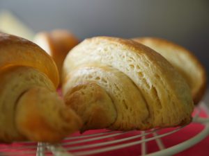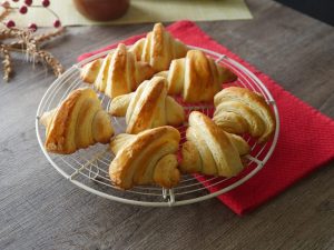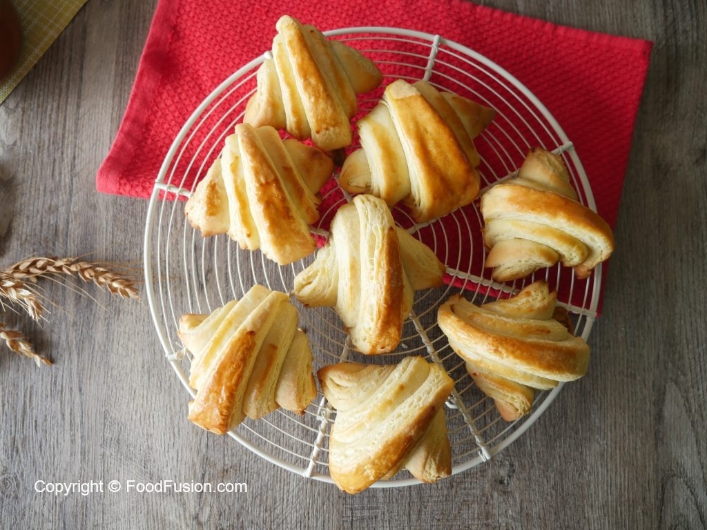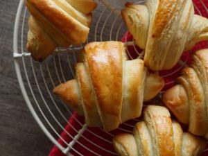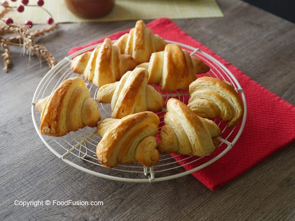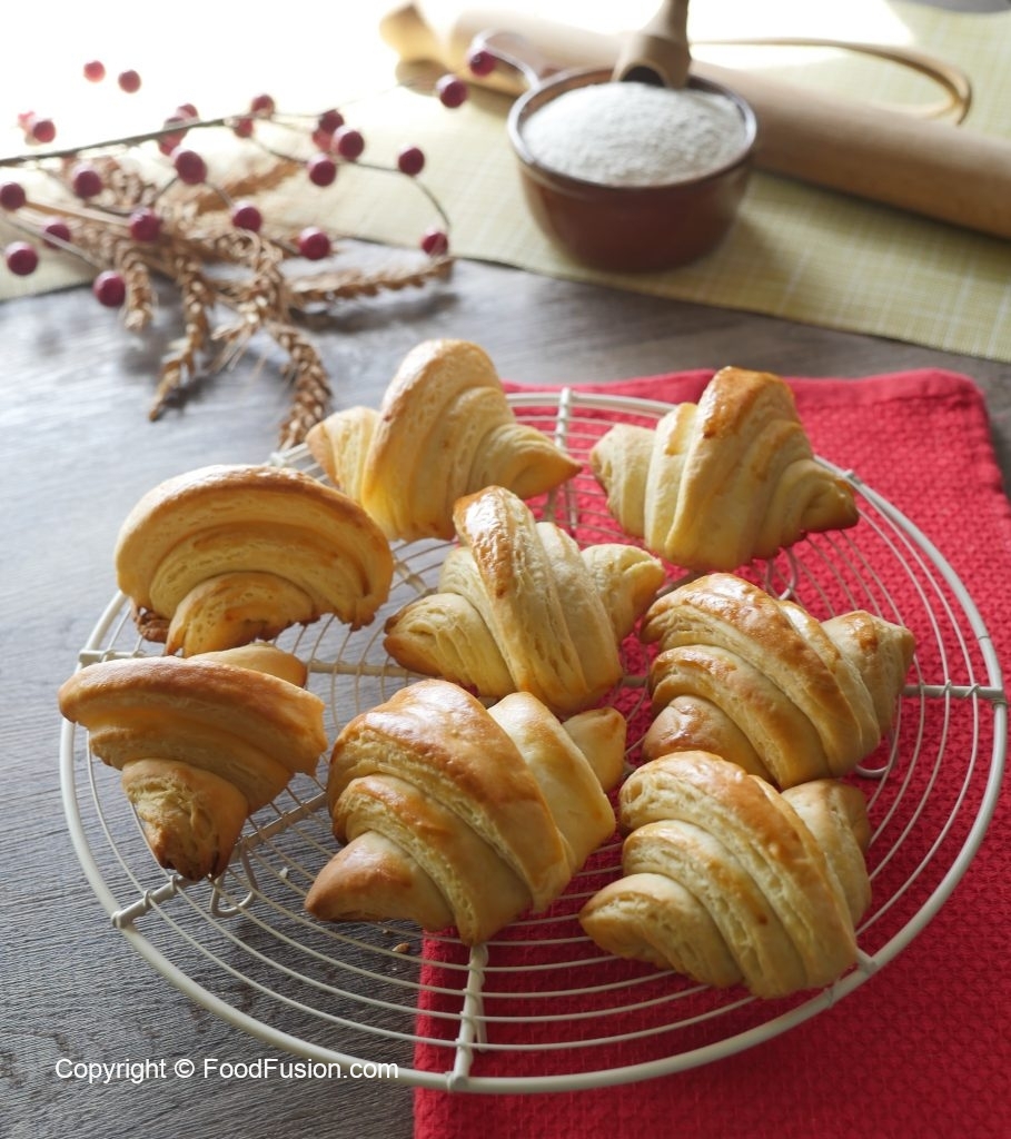 Place the croissants on the greased baking tray. Folding end must lay down.