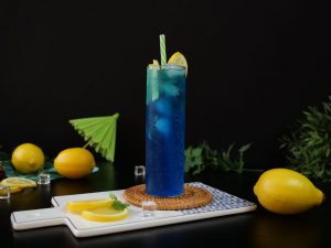 -Serving glass mein ice cubes,lemon slices,7up & tayyar blue curacao syrup (2 tbs) dal ker ache tarhan stir ker lein.