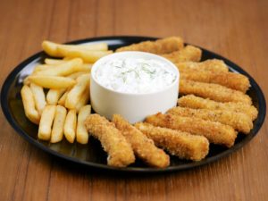 A tip for you is that you can freese the fish fingers for a few days but not more. Use think breadcrumbs for the nice exterior texture.