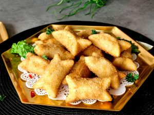 In a wok,heat cooking oil & fry on medium flame until golden & crispy.